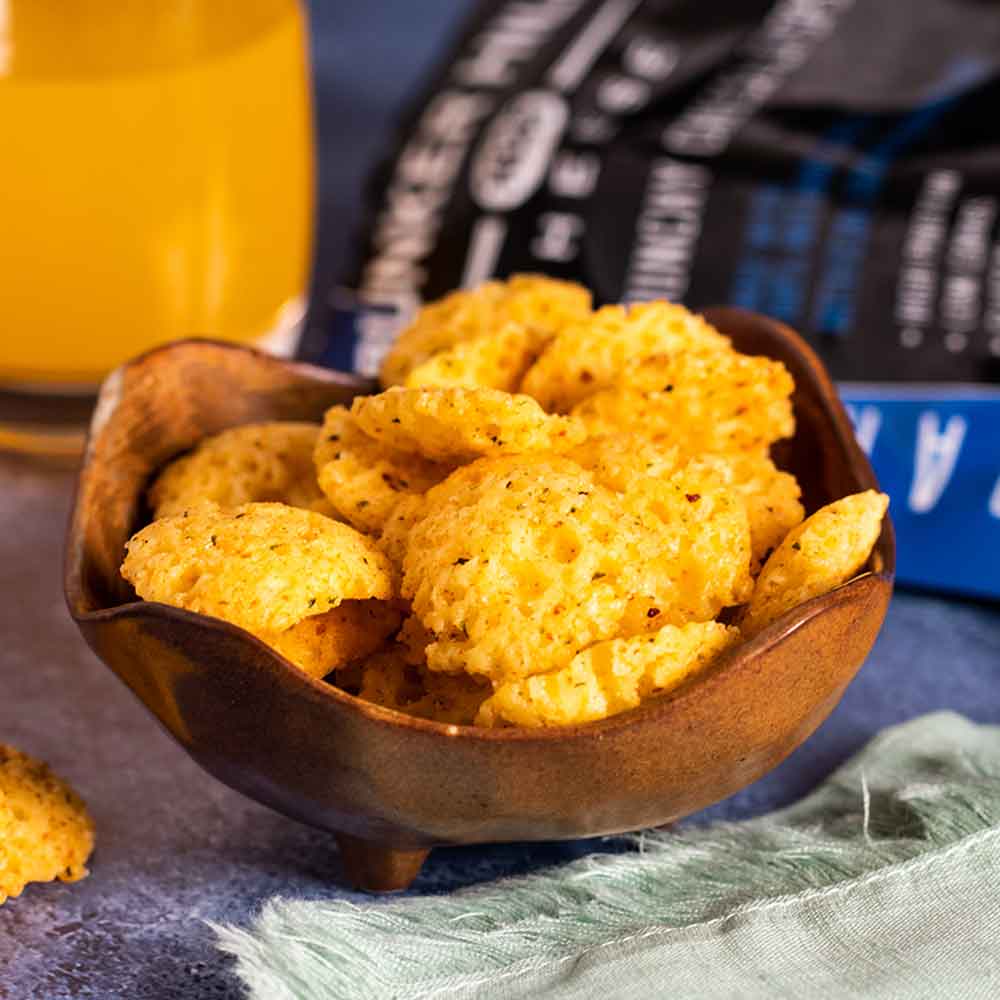 濃厚チーズの高タンパククリスプ!ケトジェニックにも◎ Bunker Hill (バンカーヒル)社の「Crunchy Cheese Crisps™(クランチーチーズクリスプ)」は、最近話題のケトジェニックダイエットに着目した「ケトフレンドリー」のクリスプ。