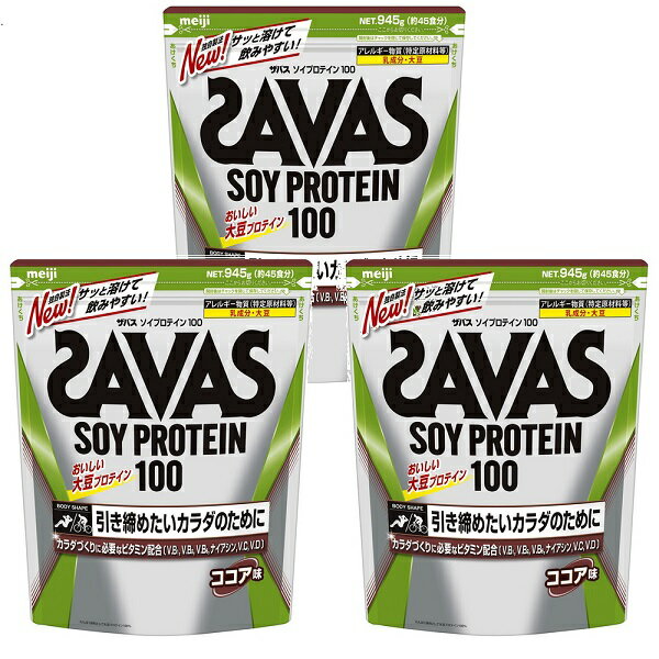 【3個セット】【送料無料】 明治 ザバス SAVAS ソイプロテイン 100 ココア味 45食分 954g ×3セット meiji 大豆プロテイン 引き締め 飲みやすい